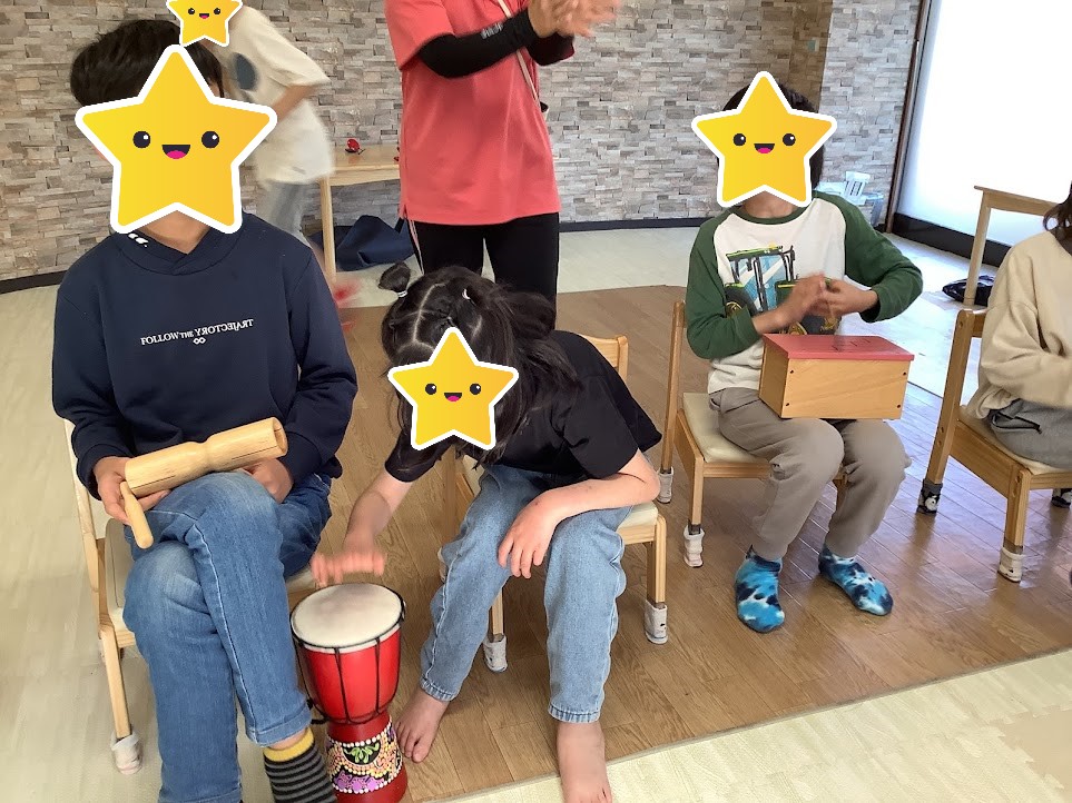 まずはスタッフと一人一人太鼓でリズムを叩いてコミュニケーションをとります🥁