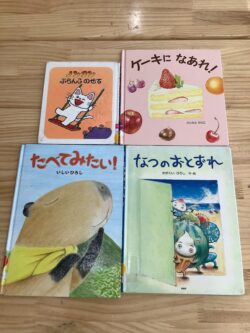 今日は「ノンタンブランコ乗せて」「ケーキになあれ!」「食べてみたい!」「なつのおとずれ」4冊分のお話を聞きます📚