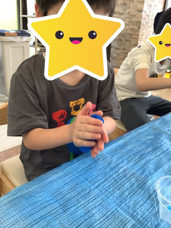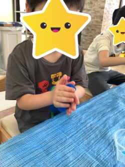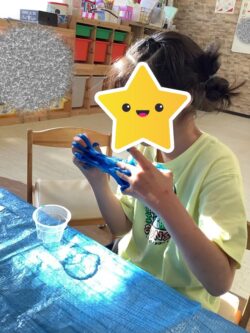 本日の課題は「感覚遊び」でスライムを使って遊びました!!