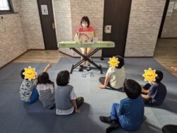 ピアノの弾き語りで『赤ずきんちゃん』の紙芝居を鑑賞しました。