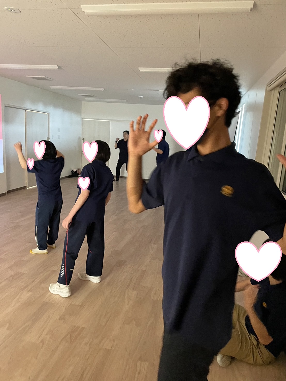 エアロビ班は動画に合わせて一生懸命体を動かします。