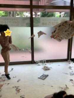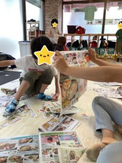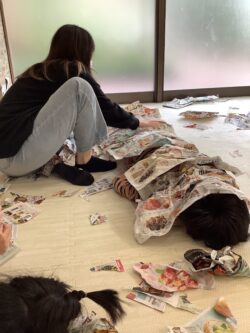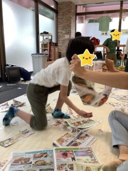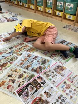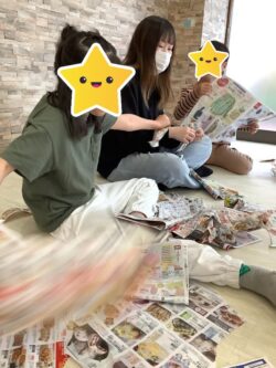 全身を動かす「粗大運動」(紙を撒く・くしゃくしゃにした紙を投げる・パンチして穴を開けるetc…)