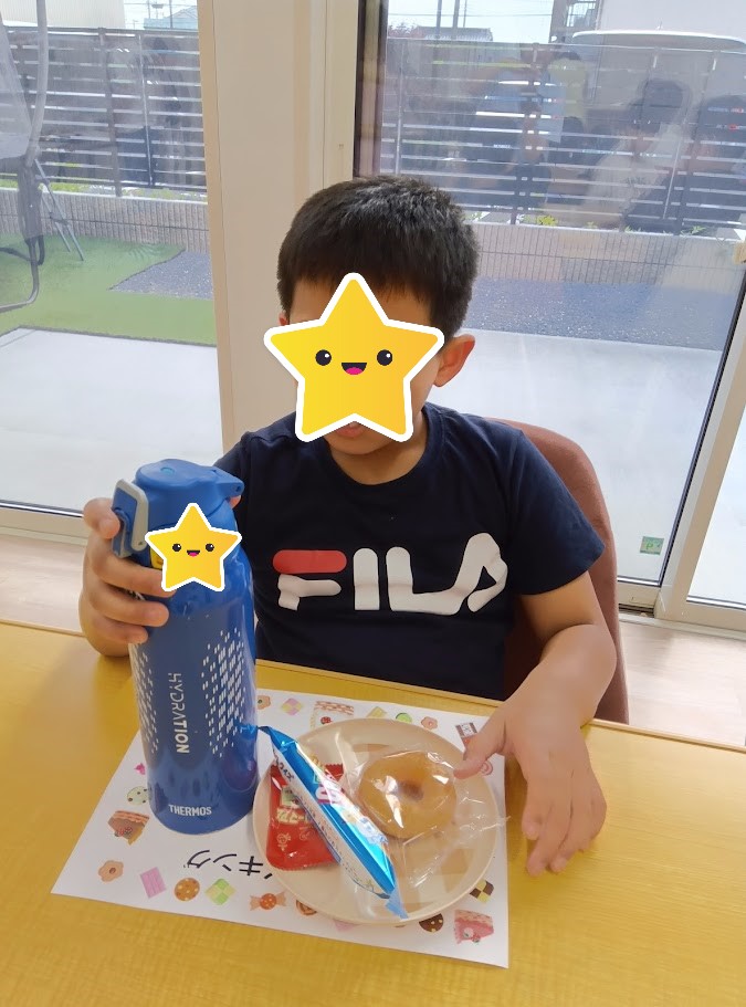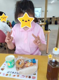 順番に並んで、「どれにしようかな?」真剣に選び、みんなニコニコ笑顔でおやつを食べていました🥰
