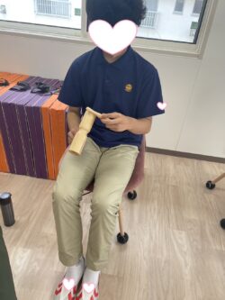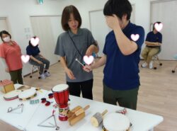 まずは挨拶替わりにスタッフと太鼓をたたいてリズム遊び🥁