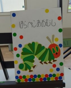 沢山音楽で遊んだ後は、「はらぺこあおむし」の読み聞かせ📚