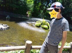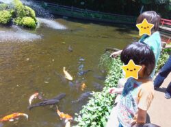 次は、池の鯉に餌をあげたよ!