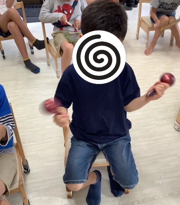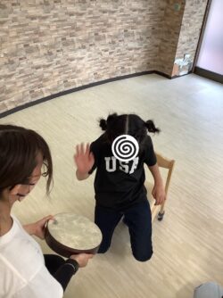 先生のリズムに合わせて叩きます😆ぽんぽんといい音がしてみんなノリノリで叩きます❕