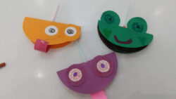 定番のみどりだけでなくカラフルなカエル型の画用紙から