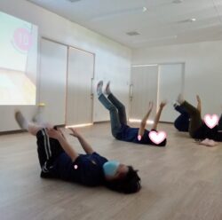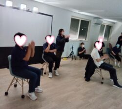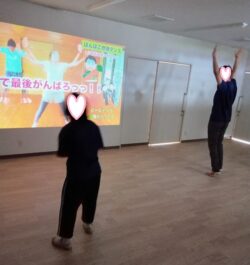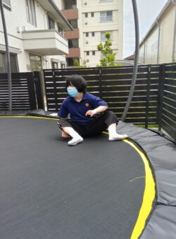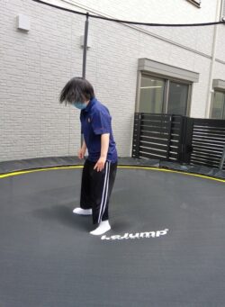 午前中は室内でエアロビをしながら、順番でトランポリンを跳びました!