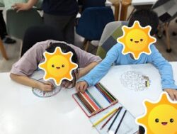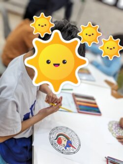 スタッフの説明を真剣に聞く子どもたち❕たくさんの種類の塗り絵に興味津々です😝