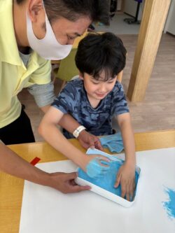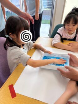 今月は模造紙に、青や水色で海の中を表現します🌟