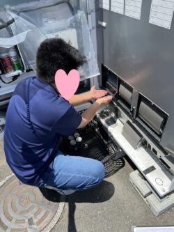 午前中は、自動販売機に飲み物を補充する班と、