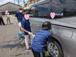 送迎車を洗車する班、