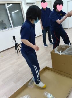 ストレッチの後は、ペットボトル潰しを行いました‼