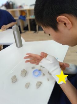 午後の活動は、皆さん初めて粘土を使って工作をしました。