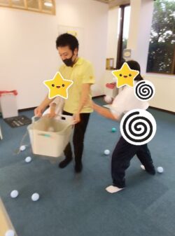 本日の課題は、ビジョントレーニングでティッシュの手づかみと玉入れをやりました🥎