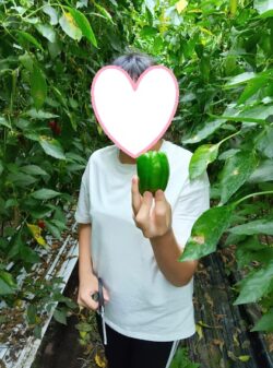 大きなピーマンをスタッフさんに見せに来てくれました!