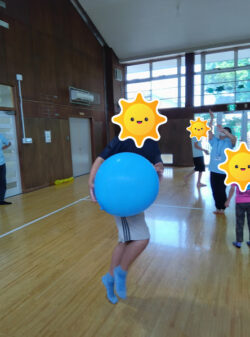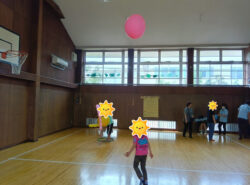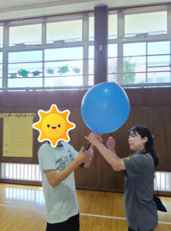 広い体育館で、巨大風船や、ツイストバルーンを使って