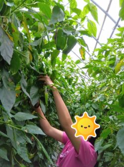 本日は、昨日に引き続き、ご利用者様の保護者の方が経営されているピーマンハウスにお邪魔させていただき、「ピーマン狩り」を行いました。