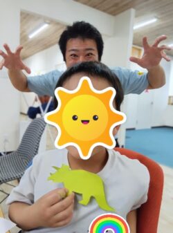 恐竜が大好き児童が恐竜の切り絵に挑戦中😊