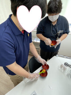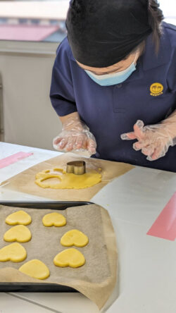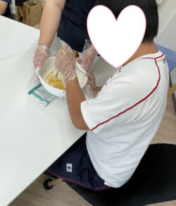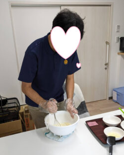 本日は利用者の皆さんのリクエストで「手作りおやつ」を午前中と午後の2チームに分けて作ります🍪