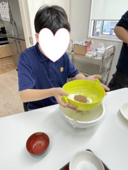 午前中計量班がはかった材料で生地作りです。