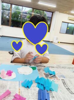 花紙を割り箸を使って、花紙を埋め込むように表現していきます。