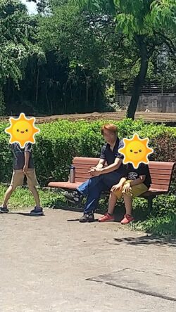 ベンチで一息!!