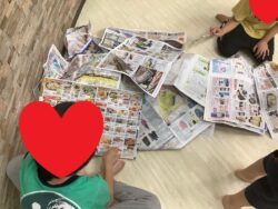 最後はみんなで使った紙を片付けました!!