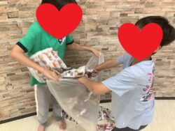 スタッフにいたずらで服の中に紙を入れられている子もいました(笑)