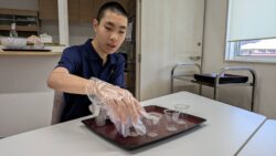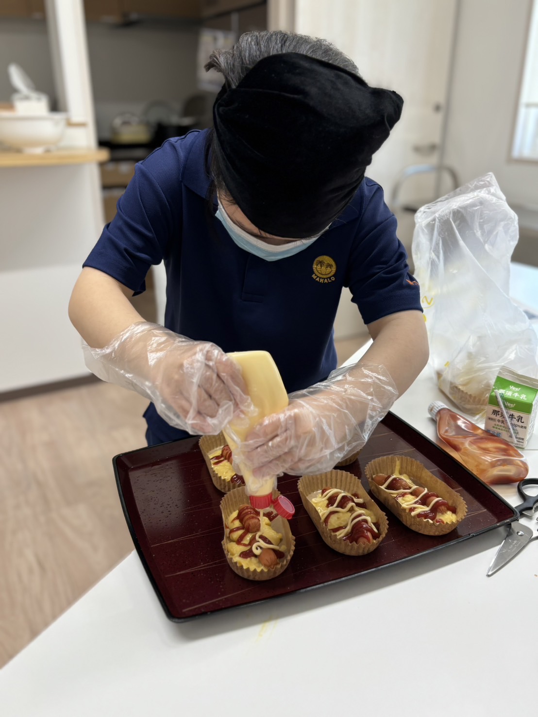 ウィンナーパン作りも、ゼリー作りと同様にスタッフの話を聞いて、集中しておやつ作りに取り組むことが