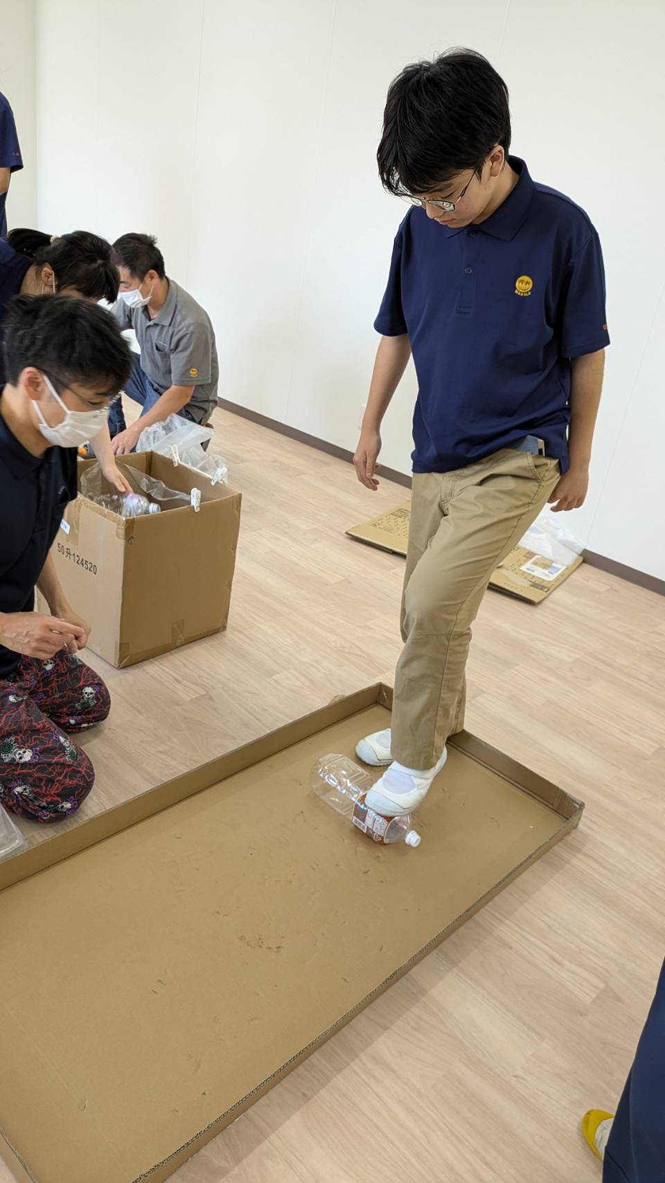 袋にいっぱいだったペットボトルを全員で潰して小さくすることが出来ました。