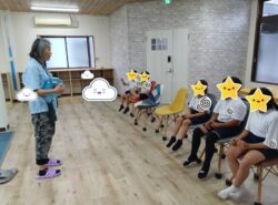 本日の課題は、SSTを行いました。二人一組でボールを使ったものや、前方の人が目をつむり、後方の人がゴールまで指示出しする協力プレイのものをしました。