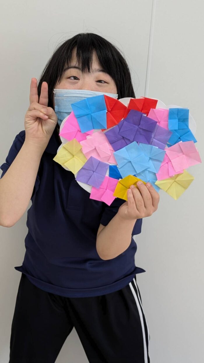 集中して全員取り組んで、アジサイのお花を作ることが出来ていました。