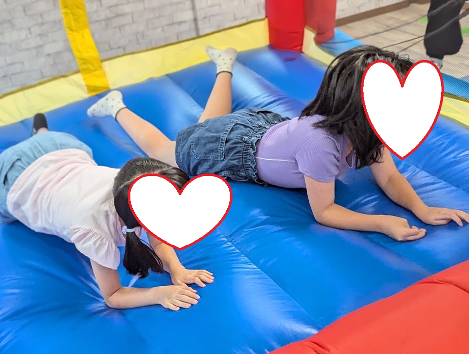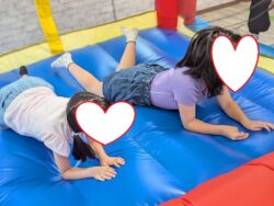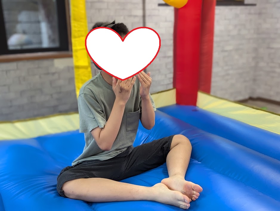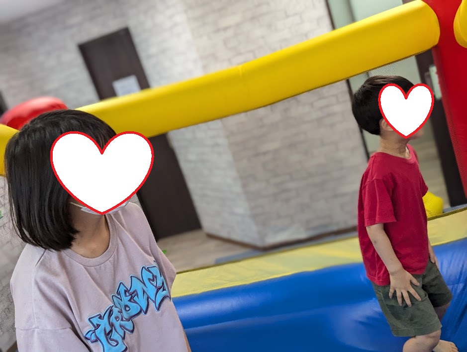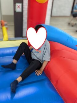残念ながら雨が降ってしまったので、お部屋の中でバウンサーを行いました。