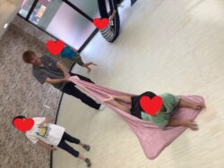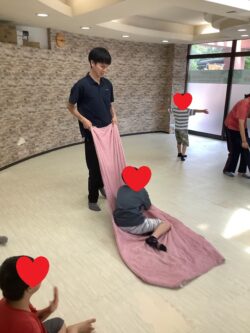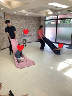 本日の課題は室内レクとして「ソリ遊び」を行いました!!