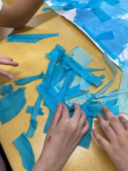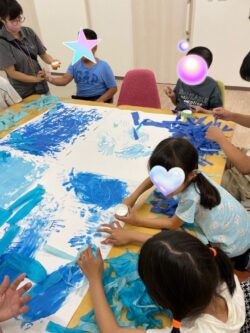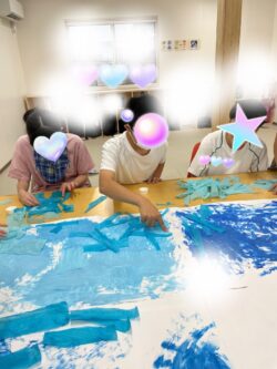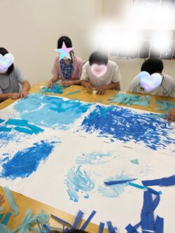 3か月かけて大きな模造紙に海をイメージした作品をつくります🏖️