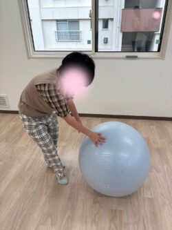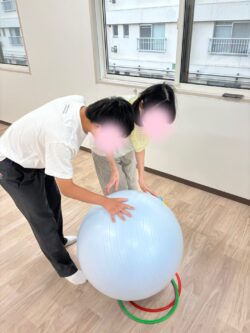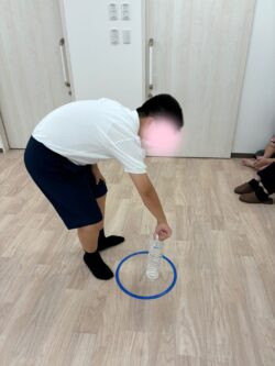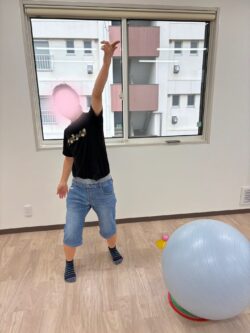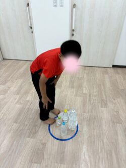 ボールを移動させる際は、マーカーの上に乗せるようにしてもらうようにして微細な運動も行いました(^_-)-☆