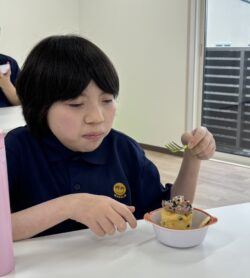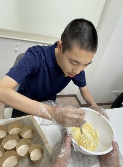 午前はケーキ作りを行いました。