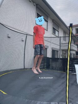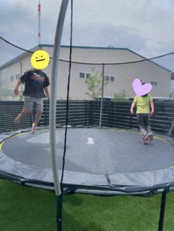 午前中、トランポリンで楽しく遊んだあとは