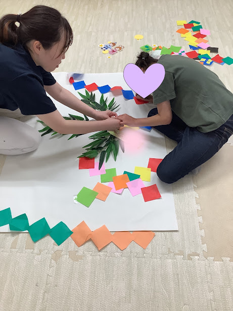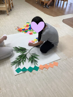 まずはみんなで短冊にお願いごとや絵を書きます✍