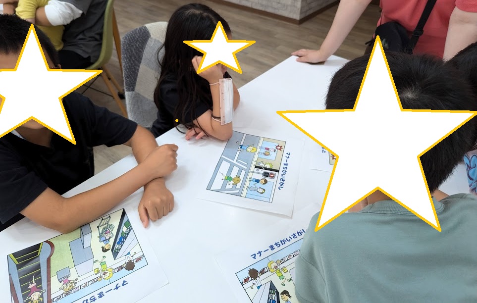 「スーパーでのマナー間違い探し」「道路でのマナー間違い探し」の2つを行いました。
