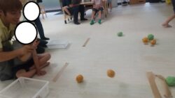 ガムテープが貼ってある所にボールがくっついたら成功です✨