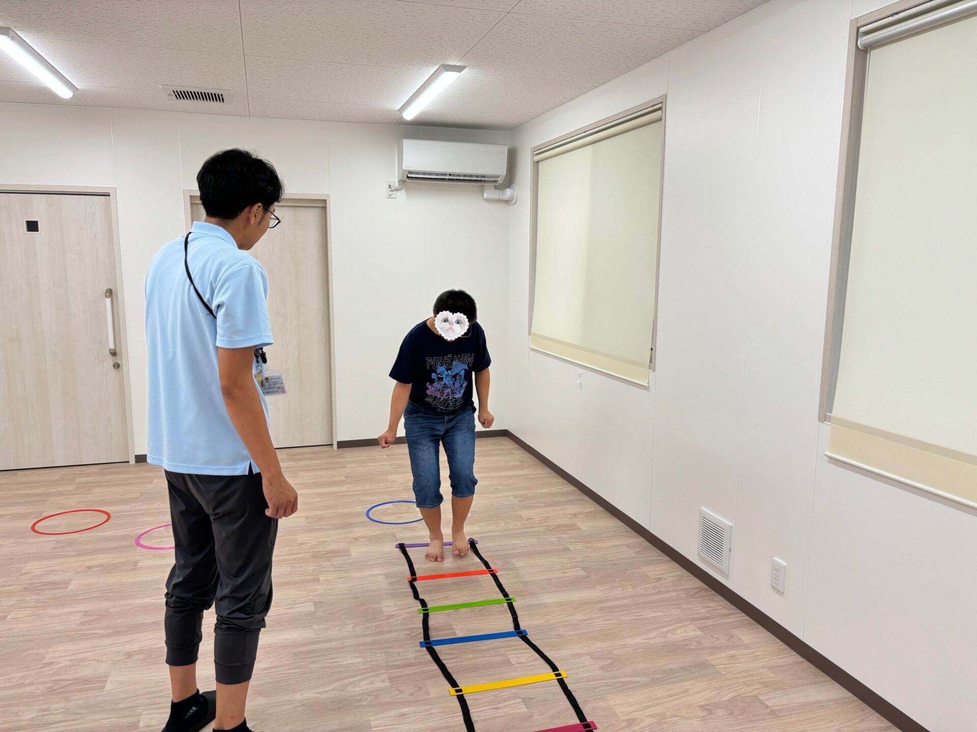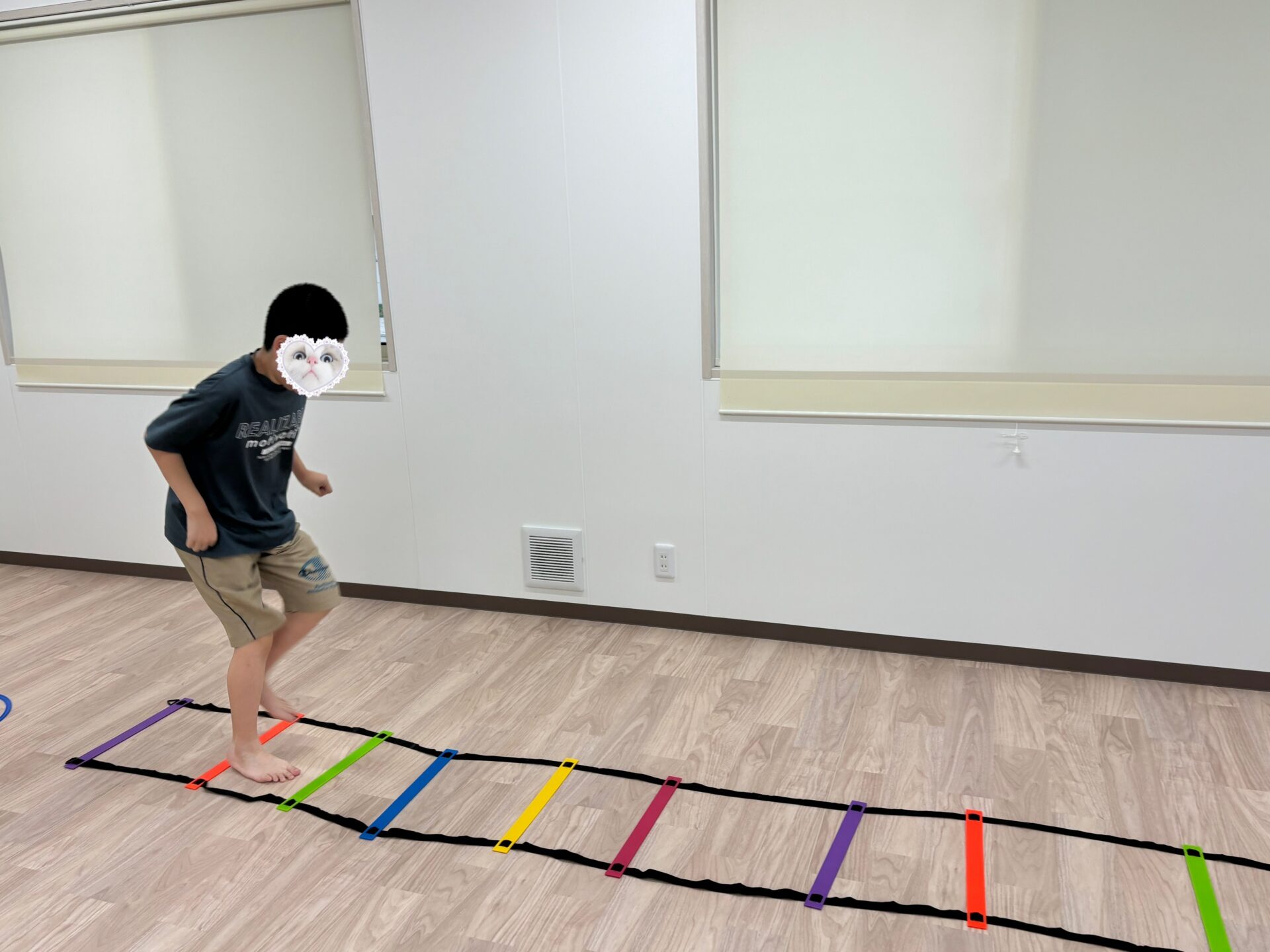 ①トンネルくぐり ②ジャンプ ③ラダー と3つのコースを設置し、