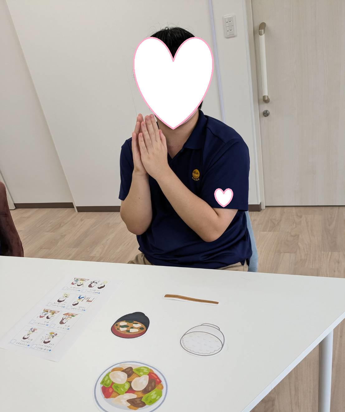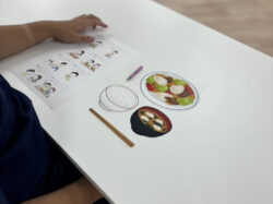 ご飯や味噌汁の位置、食事の際のNG行為をスタッフの話を聞いたり、プリントで学習しました👍