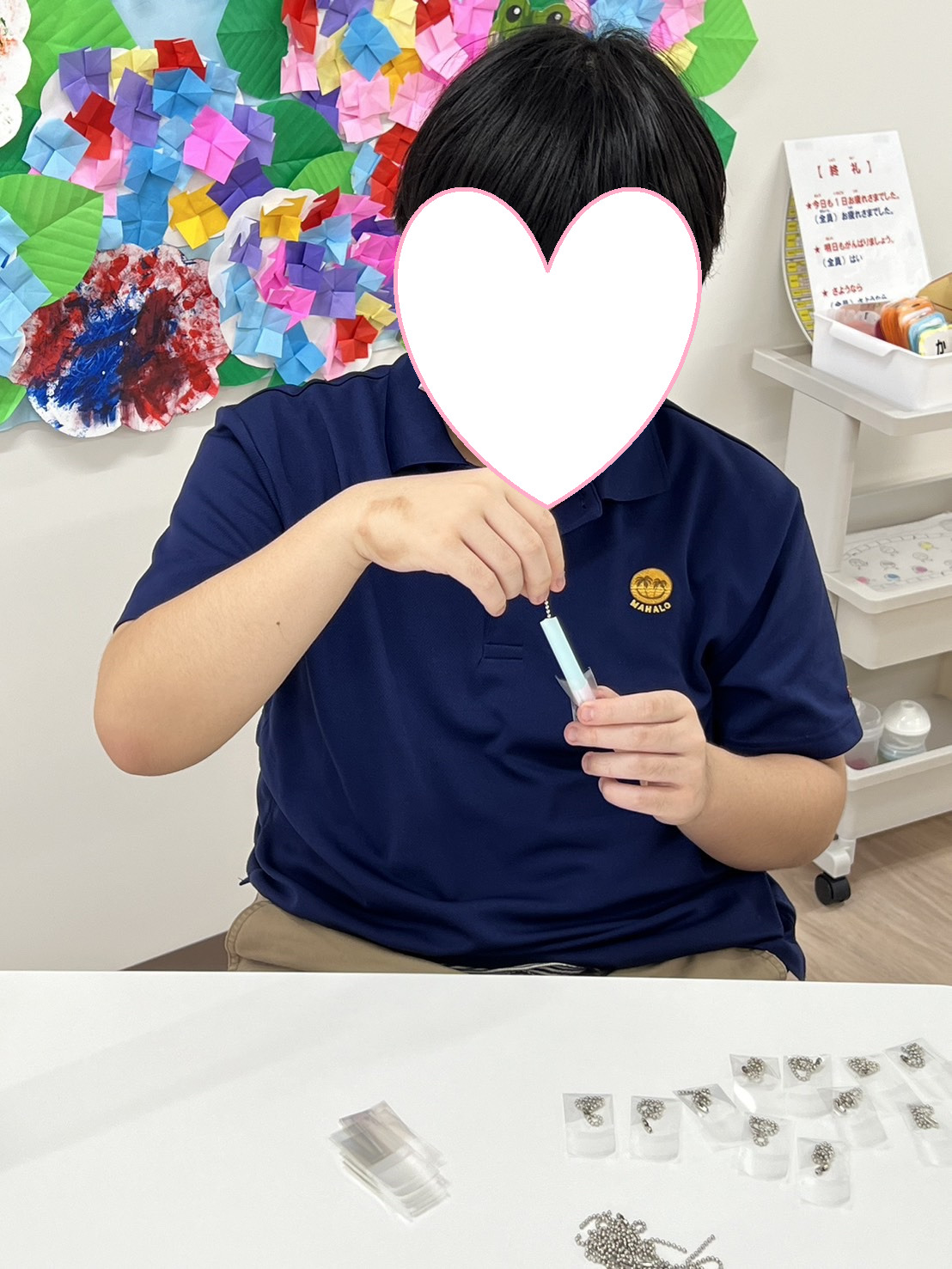 本日の作業は昨日に引き続き、「ボールチェーン」を袋に入れる軽作業のお仕事を行います。
