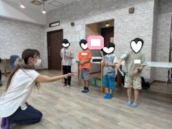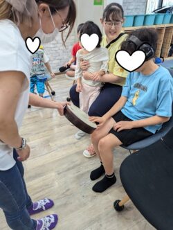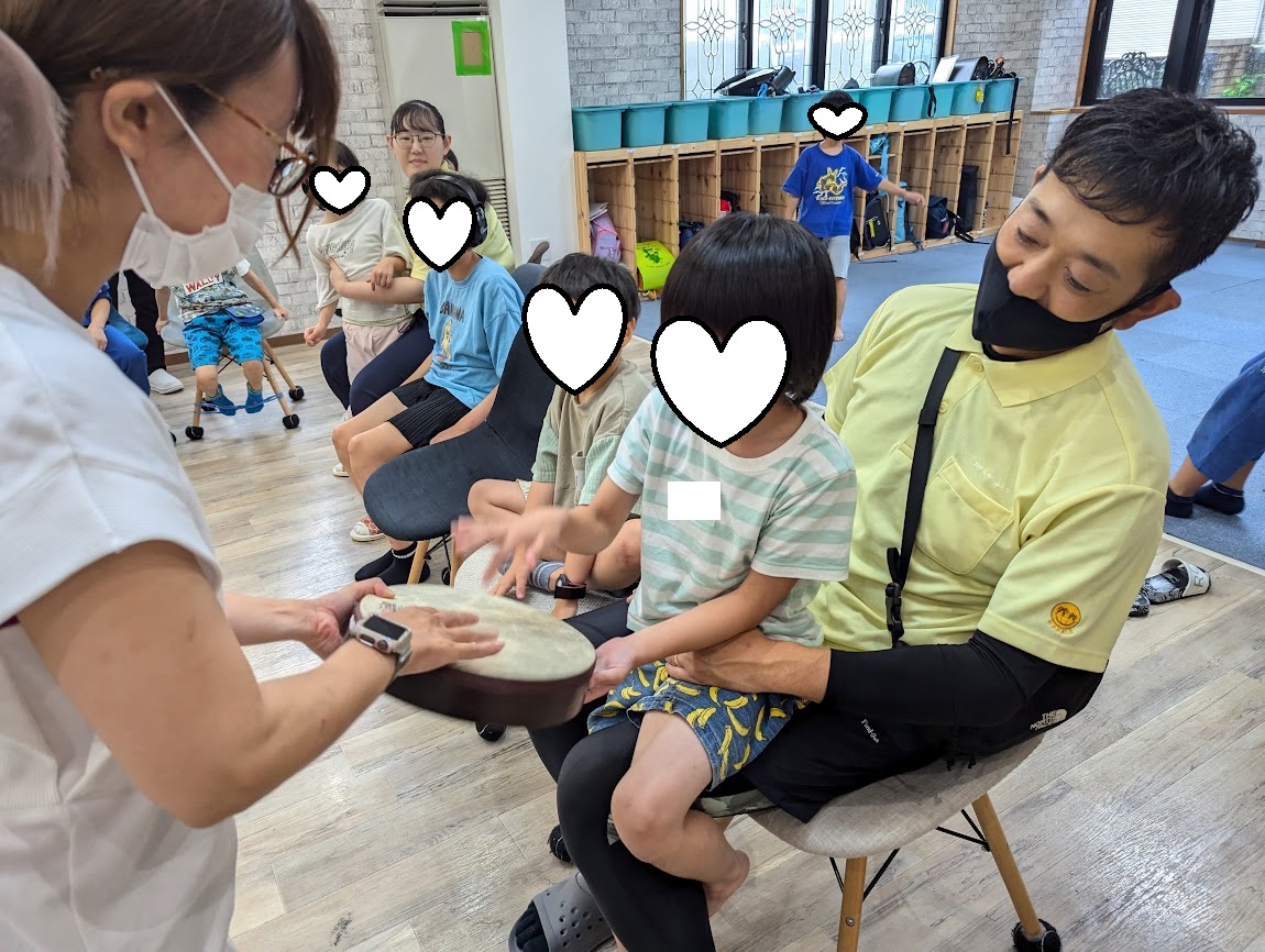 先生のリズムに合わせて叩きます😆ぽんぽんといい音がしてみんなノリノリで叩きます✋