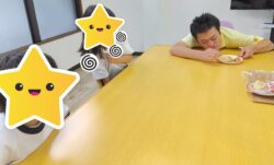 「はい!正しいのは、背中を伸ばした姿勢で食べることです!」