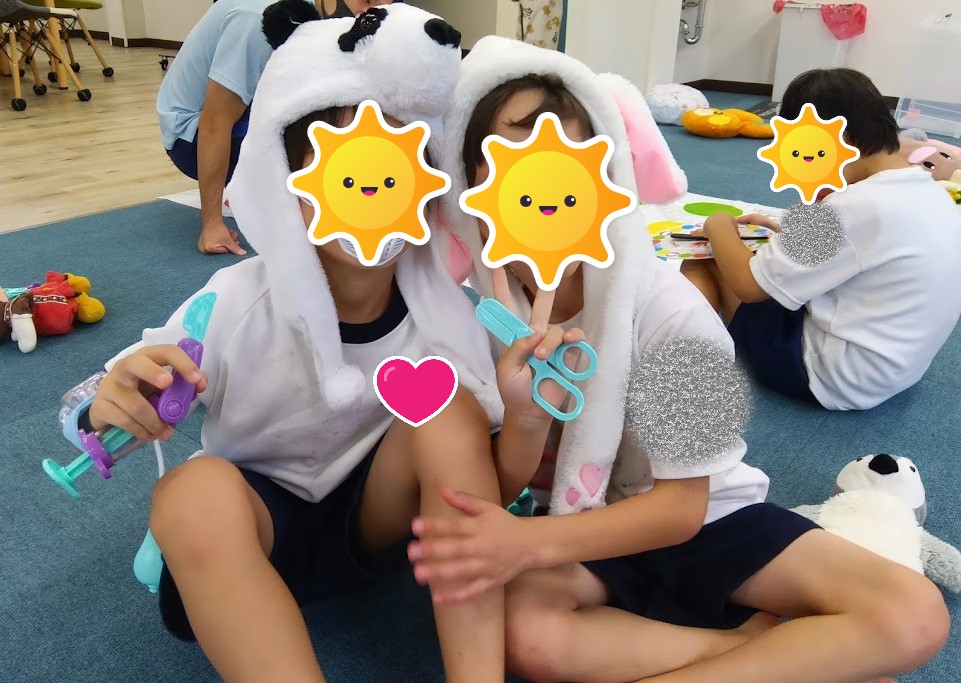 こちらは動物の被り物を被って、お医者さんごっこをしている様子です!