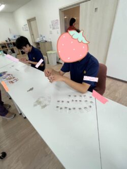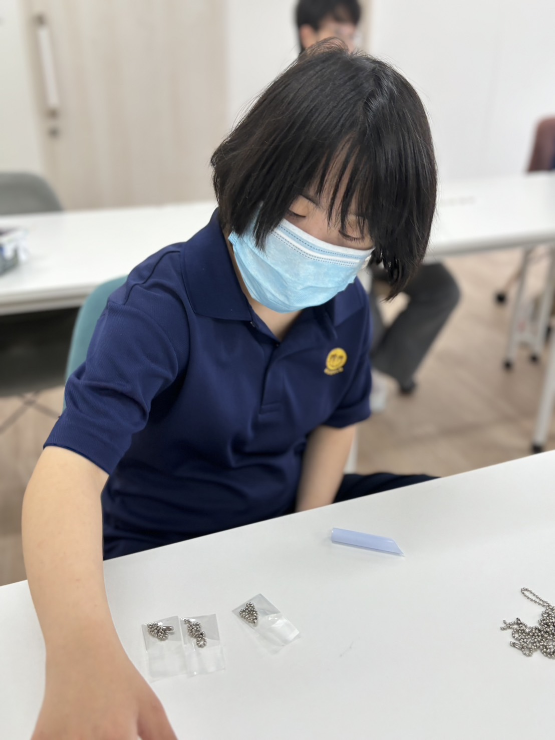 昼食後には終わりの見えてきたボールチェーンの封入作業を行いました。